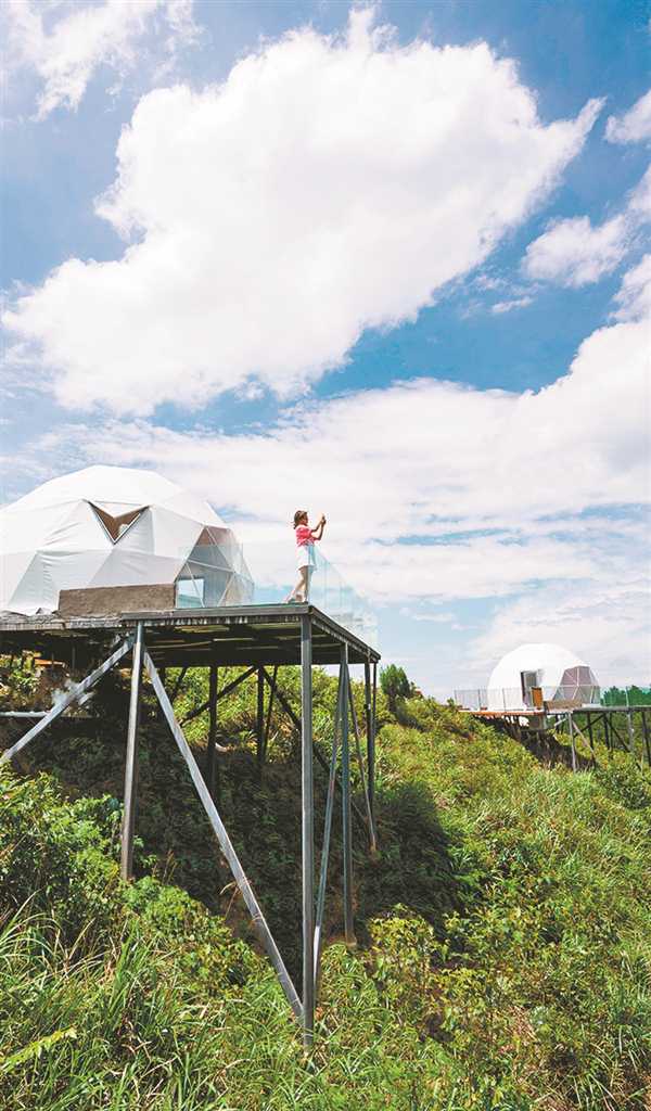 就如那名叫“清風場”的鄉建田園,“別了江湖,我要回我的清風場去”,青磚黛瓦的平房小院和綠植掩映的村落街巷構筑成了這方別有洞天的天地,梯田插秧、荷鋤播種、山野垂釣……所有的回歸都是理所當然。而在九頤生態度假區的“橫山一舍”民宿里,360度的玻璃房渾然天成,置身其中仿佛與周圍的山水融為一體,看日起月落、觀星星云海,不禁想起兒時院壩里納涼的場景。